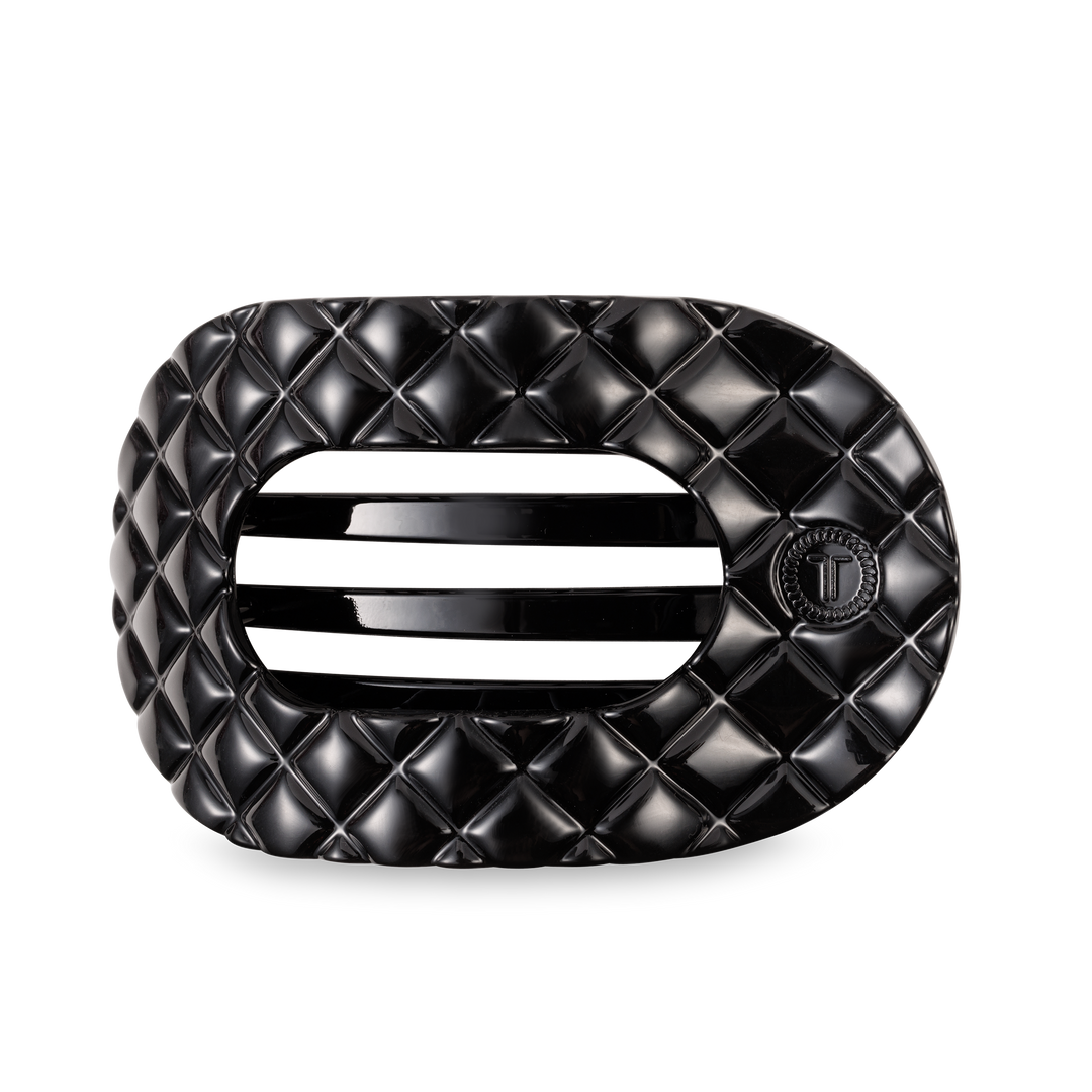 Flat Round Hair Clip | Large | Jet Black Quilted