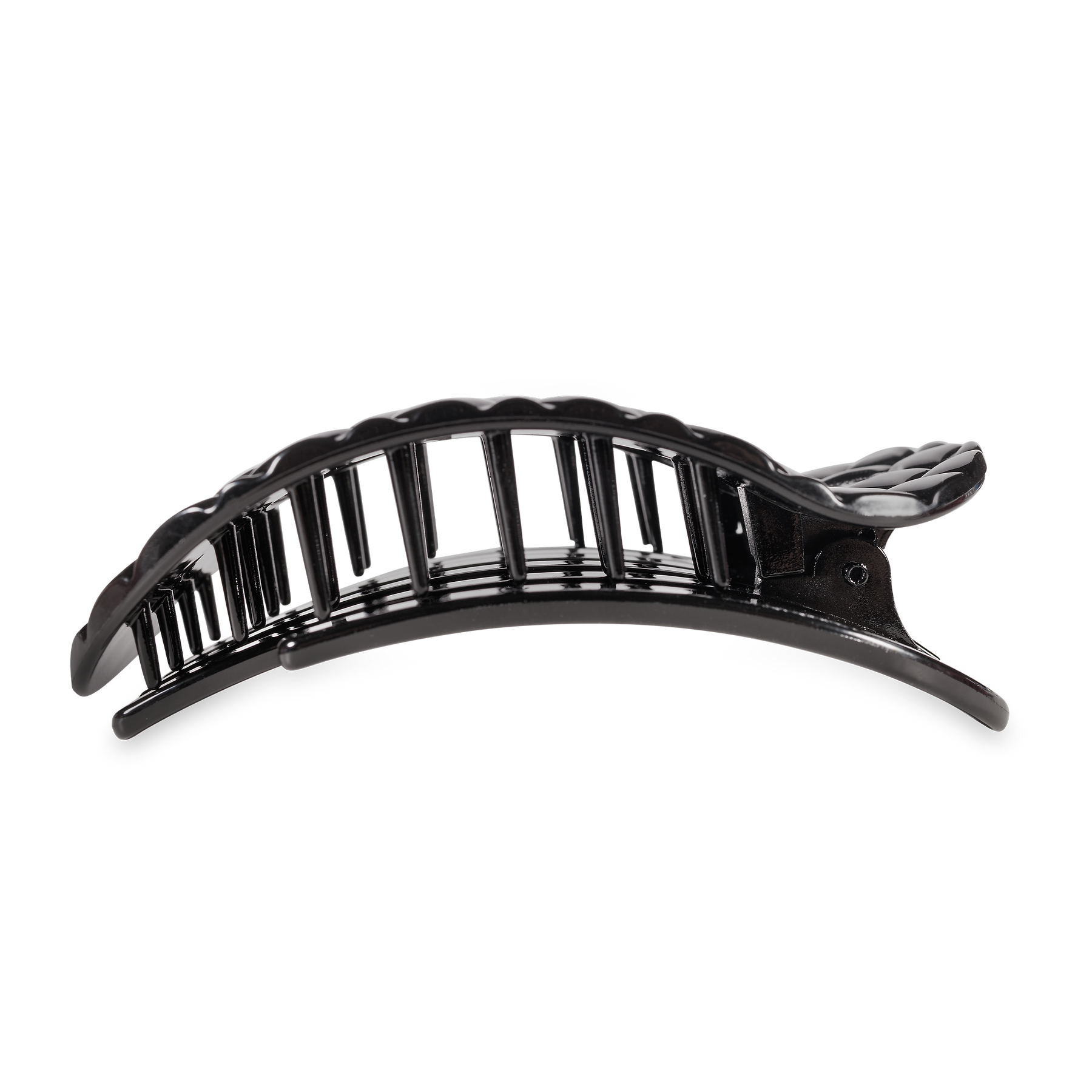 Lay flat and relax with the new TELETIES Jet Black Quilted Large Flat Round Hair Clip in Black. This hair clip is designed to allow you to lay back flat, do yoga, or sit comfortably in a seat with a headrest, and it is made with the same material that is nearly unbreakable. Lay down flat with comfort Bendable teeth for a secure yet gentle hold Lightweight, durable, and suitable for all hair types Perfect for all-day wear—from sunup to sundown The large size is 4.25 inches long.