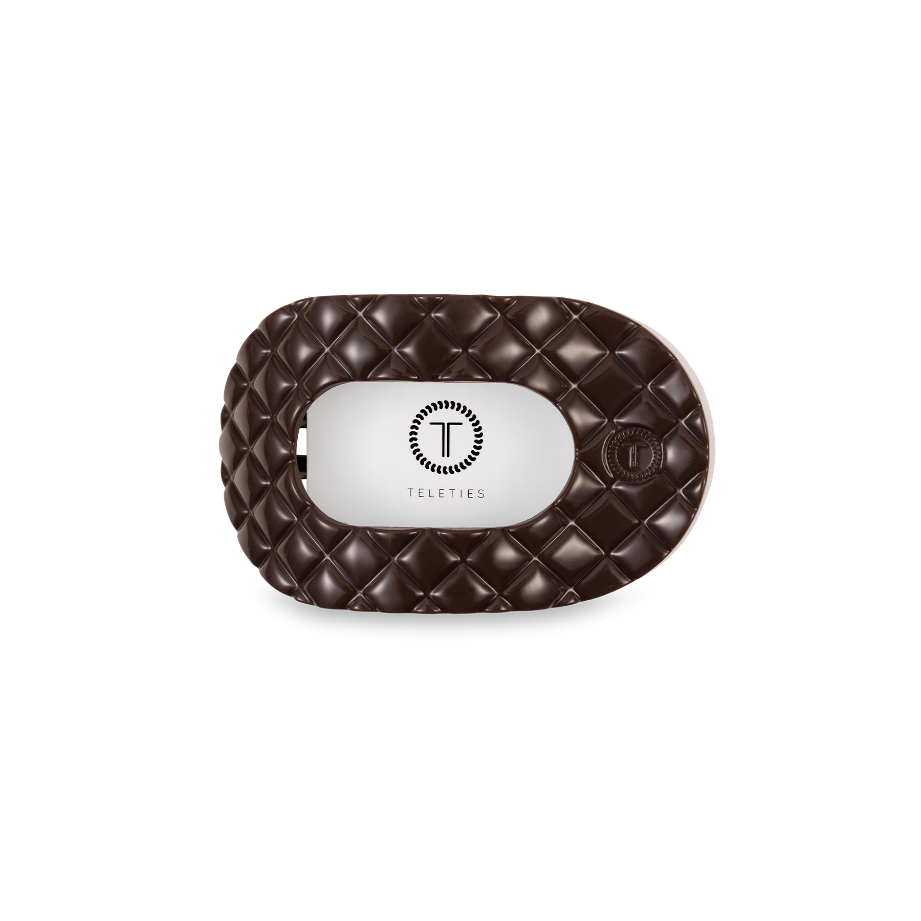 Lay flat and relax with the new TELETIES Truly Taupe Quilted Small Flat Round Hair Clip in Taupe. This hair clip is designed to allow you to lay back flat, do yoga, or sit comfortably in a seat with a headrest, and it is made with the same material that is nearly unbreakable. Lay down flat with comfort Bendable teeth for a secure yet gentle hold Lightweight, durable, and suitable for all hair types Perfect for all-day wear—from sunup to sundown The small size is 3.25 inches long.