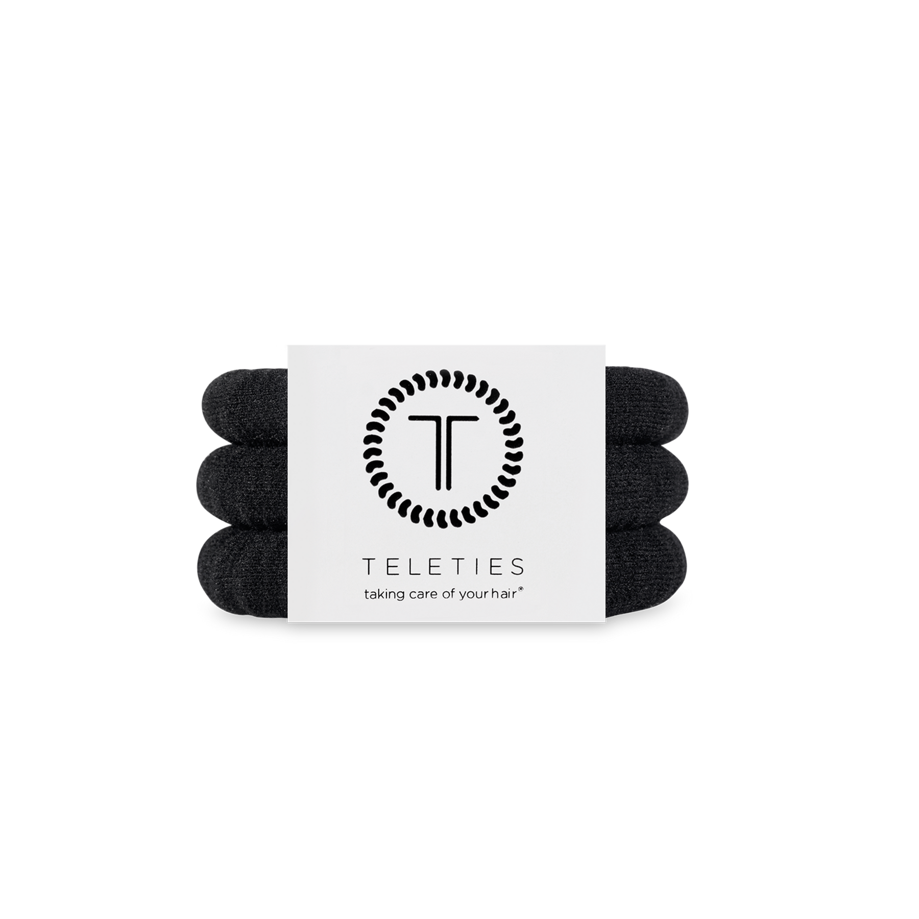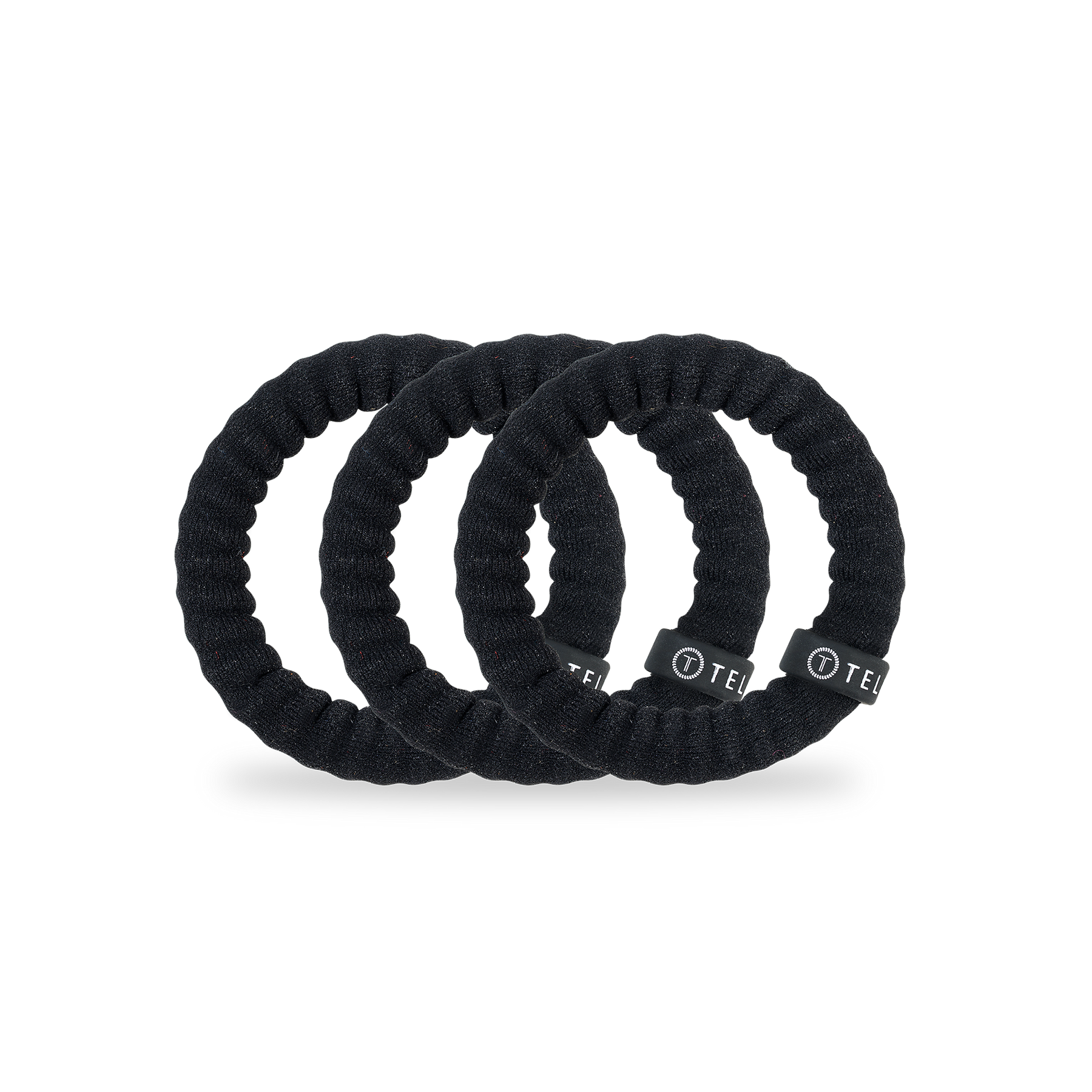 Jet Black Small Nylon Hair Ties are the same game-changing TELETIES coil hair ties, now wrapped in soft nylon for added comfort and curl confidence. These fabric hair ties work great with all hair types, but were made specifically with curly and textured hair in mind.