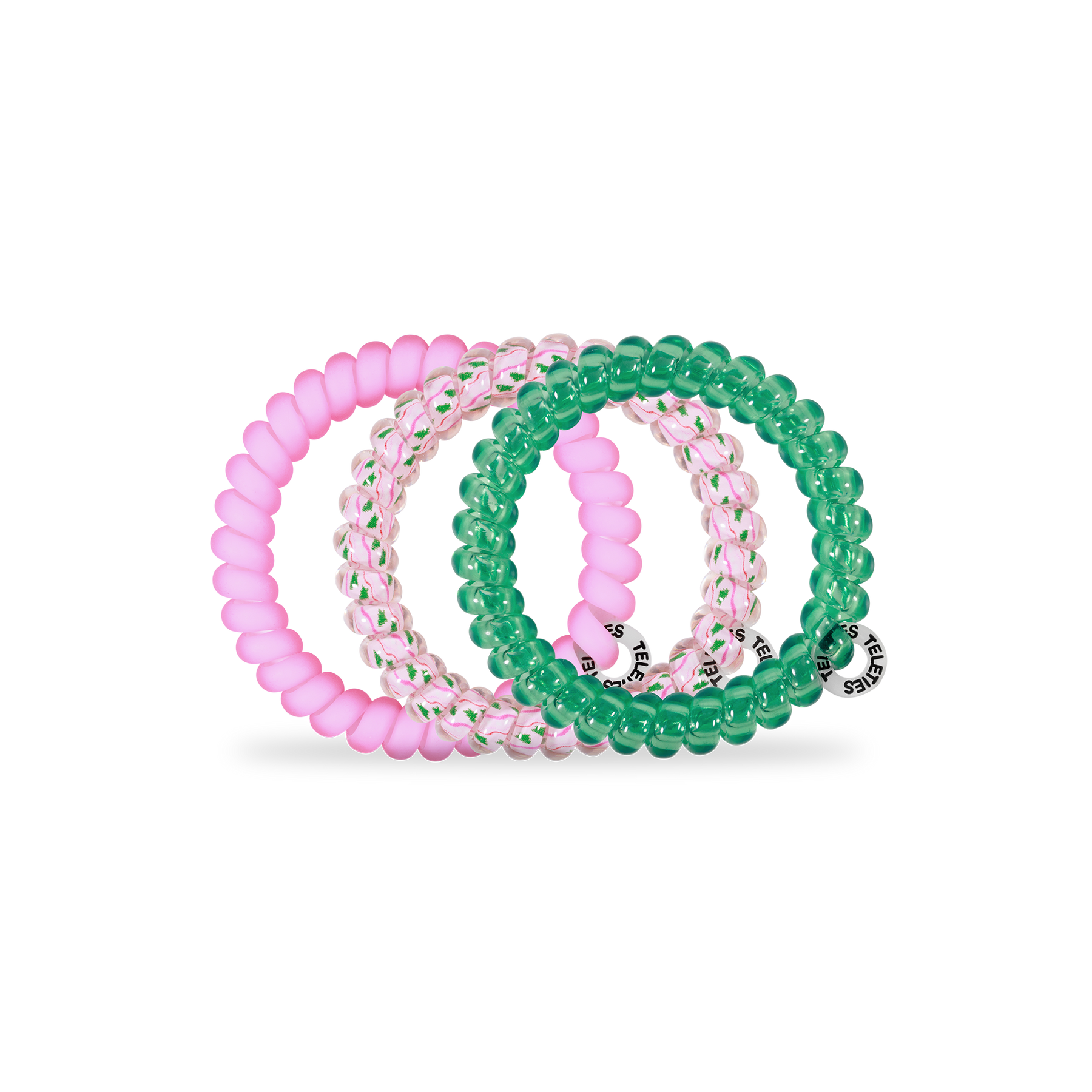 Merry Pinkmas Small Hair Ties in Pink and Green offer a strong grip without damage, doubling as a chic wrist accessory when not in use. Your new favorite hair essentials all year round.