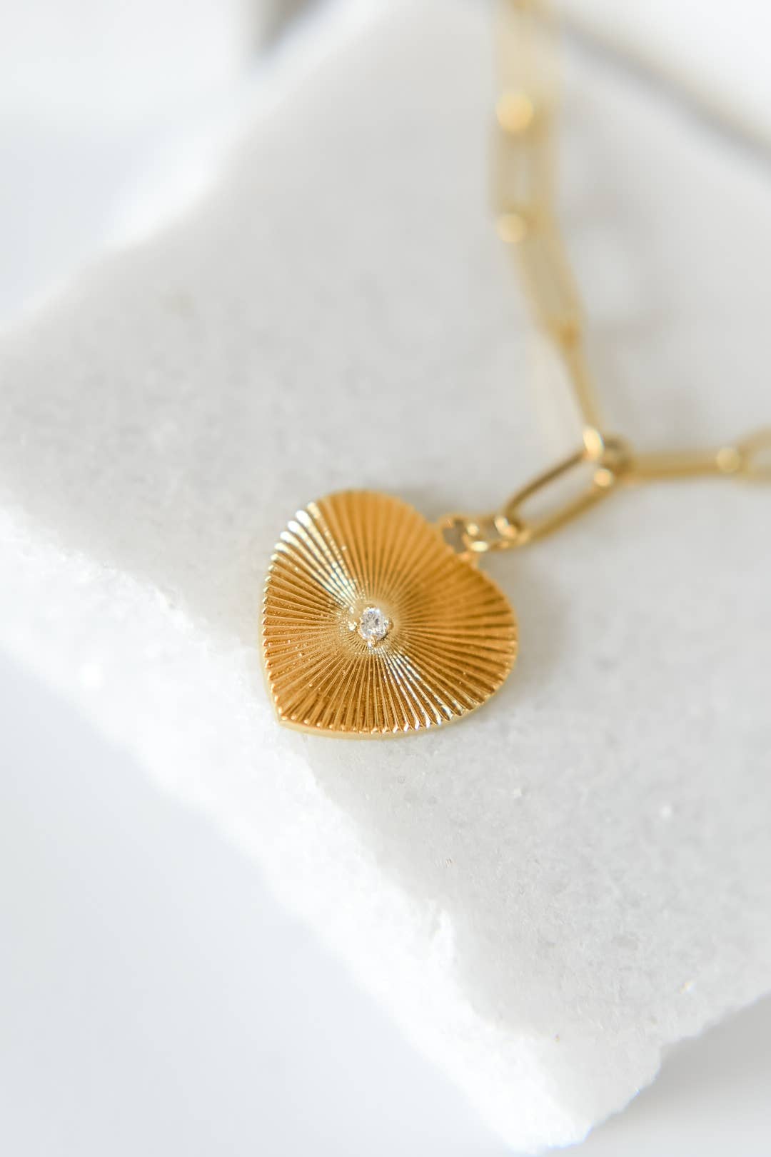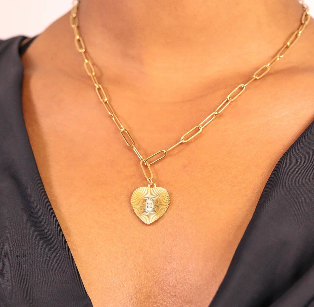Elizabeth paperclip charm necklace *paperclip necklace & chunky heart charm necklace *18k gold plated stainless steel *nickel & lead free. hypoallergenic *18in necklace with 2in extender *18mm heart charm