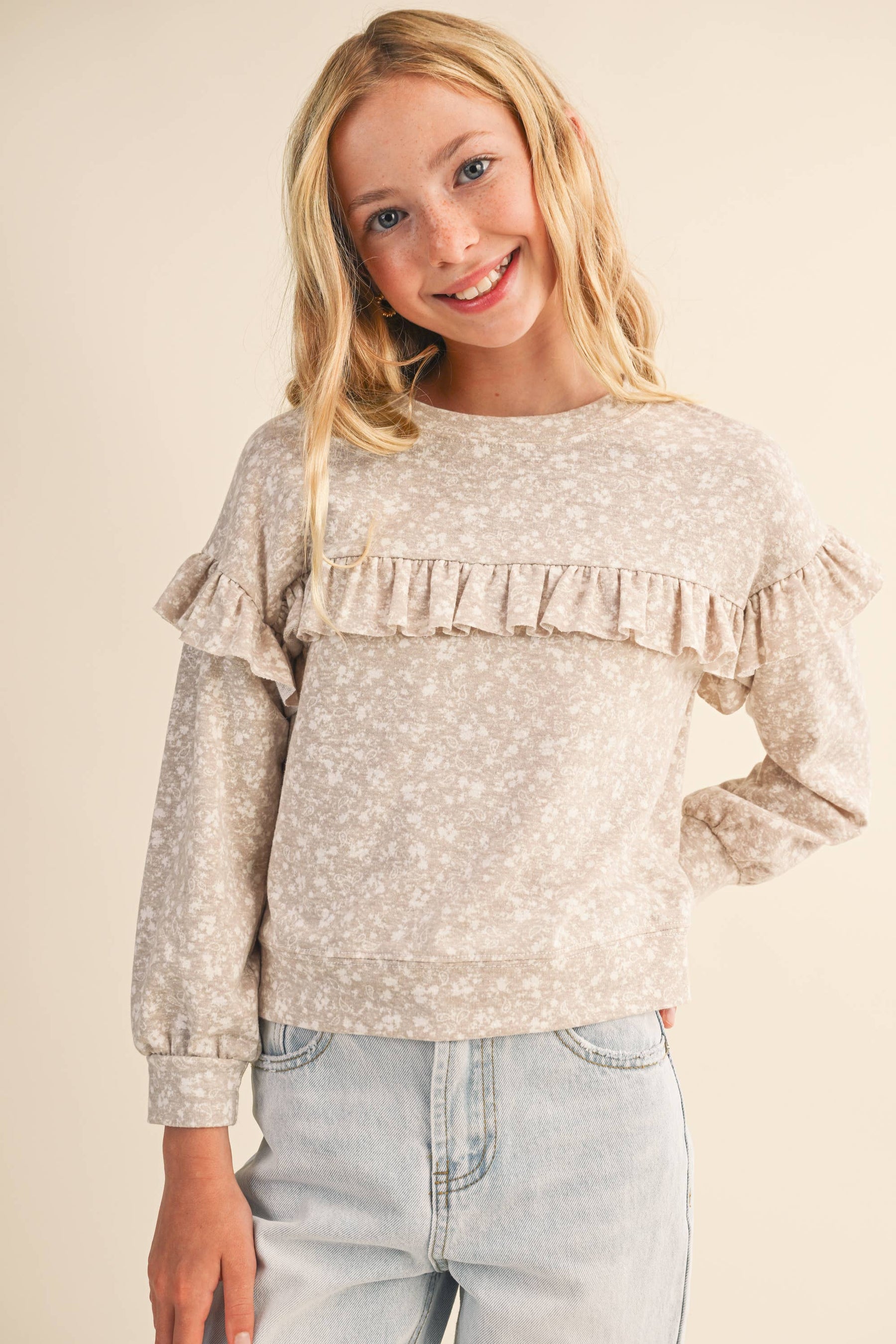 LITTLE GIRLS KIDS RUFFLE SWEATSHIRT Long sleeve with cute ruffle details, make this simple sweatshirt more fashion and chic. Great for daily wear, home, school, birthdays, special occasions.