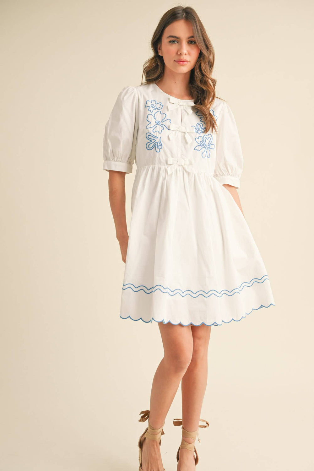 EMBROIDERY BOW MINI DRESS
